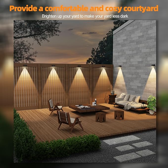 - 【High Efficiency & Energy Saving】The fence lights solar powered feature upgraded focused LEDs and advanced reflective lens technology,brightness with a more concentrated beam that covers a wider area. We advocate a green life, solar lights outdoor can reduce your household electricity bill, high-efficiency photovoltaic panels will be sunlight into electricity efficiency increased by 20%, both energy-saving and environmentally friendly