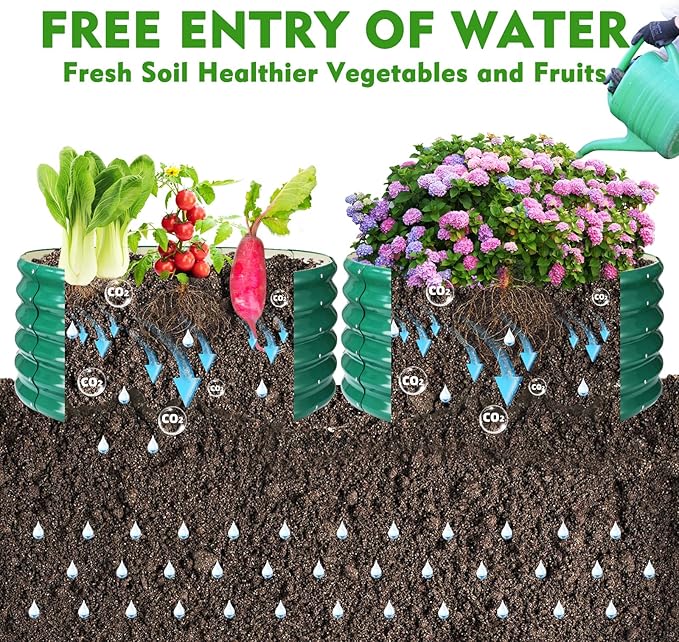 - Materials and Construction: The raised garden bed kit is constructed with sturdy metal 0.8mm thick, providing a reliable framework for your garden.The round-shaped design adds a unique aesthetic,and the 17" height provides ample depth for plants