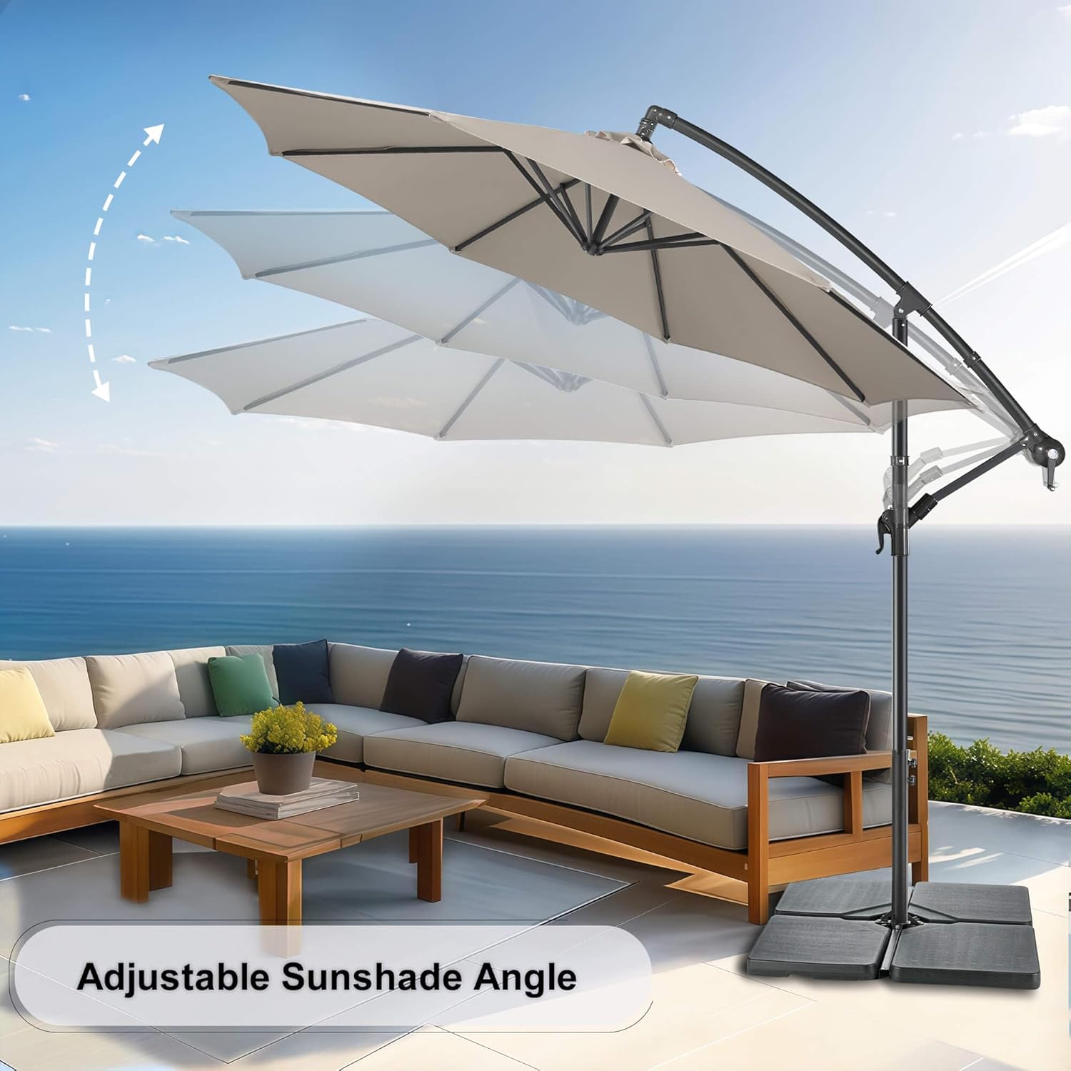 - Note: This cantilever patio umbrellas come with a lightweight cross base (stand only) and requires a minimum 100lbs (45kg) weighted base or sandbags for safe, stable use (compatible bases: B0795SD1JS, B0CKSG7M4W). Protect your investment from rain, snow, and wear with our durable weatherproof cover (B0DRYPXVDW) to double its lifespan—because luxury shade should last