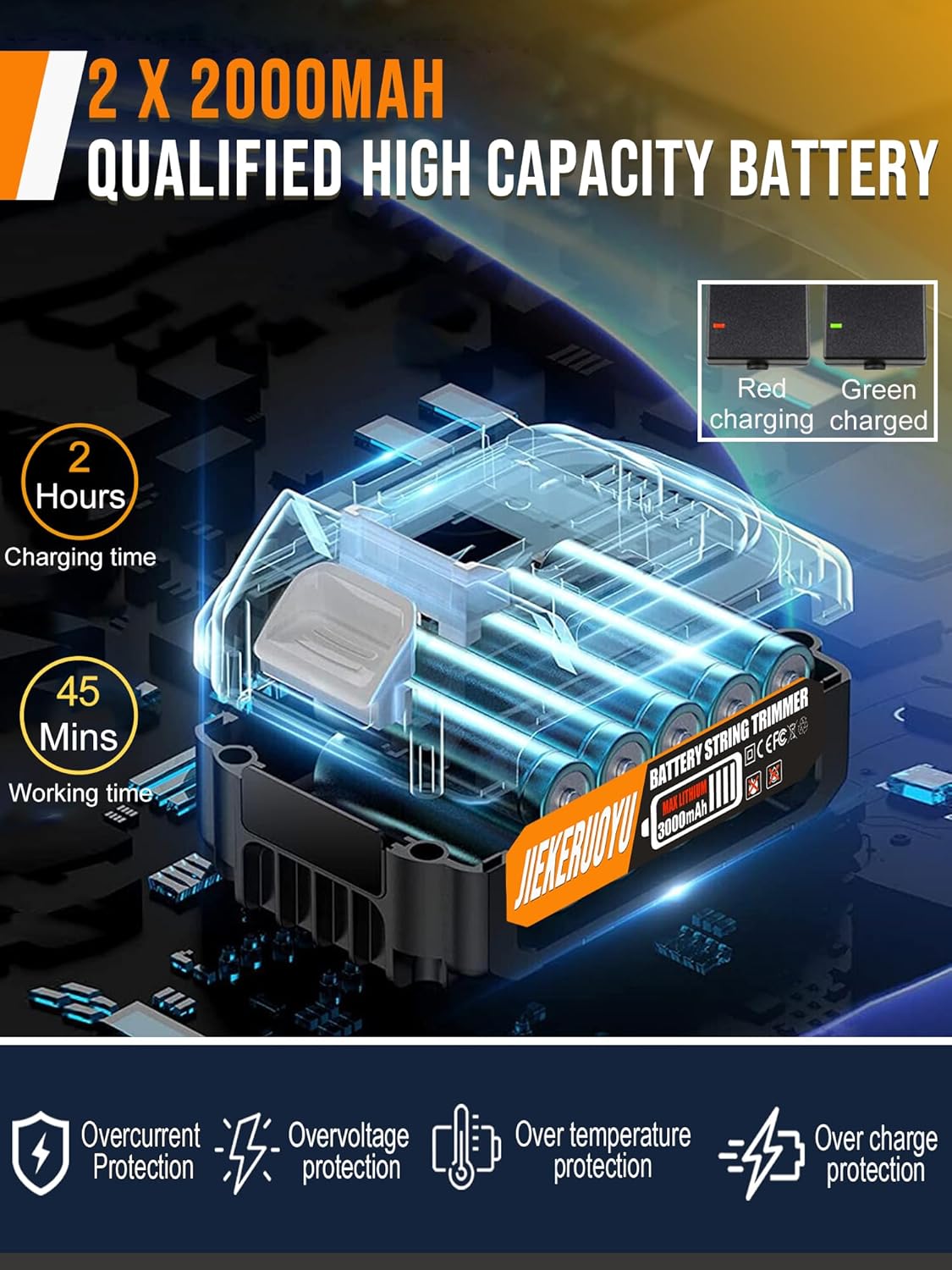 - 【Fast Charging & High Capacity Battery】This weed wacker cordless comes with 2Pcs 21V-2.0 Ah rechargeable lithium battery operated and 2-hours fast charger, provides up to 90 minutes of run time. Assembly takes mere minutes, no annoying outlet and cable so you can go wherever you need to trim!