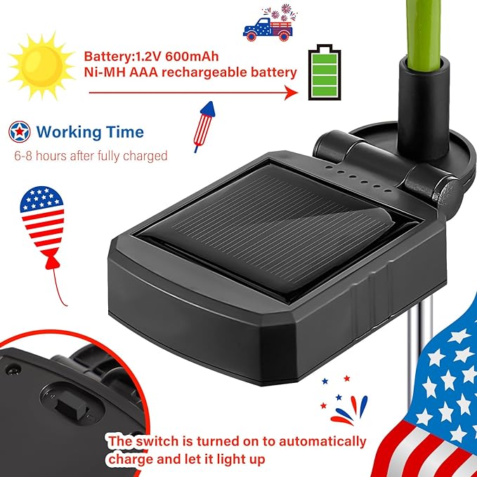 - Solar Power Supply: the grave decorations for cemetery are turned off by default during the day and automatically turns on the LED at night; The battery has 600mAh large capacity, can work continuously for 8-10 hours, and it takes 6 hours to fully charge