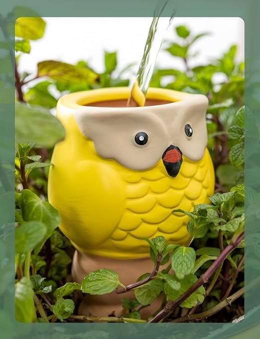 - 🦉Easy to Use: Simply soak the terracotta in water, insert self-watering spikes into the soil, and fill it up. The wide opening makes refilling easy, and the automatic plant waterer gradually releases water into the soil, keeping your plants perfectly moist without overwatering.