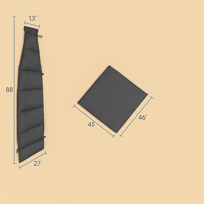 - ⭐️ UPDATE YOUR OLD CUSHION AND UMBRELLA: Cushion is 88 inches long (or 79 inches long with attached headrest pillow folded over) x 27 inches wide x 2 inches thick and weighs 2.4 pounds; Umbrella is 44.5" long x 45.5" wide and weighs 0.6 pounds (PLEASE NOTE: Umbrella only fits 4-Spoke Umbrella Attachment)