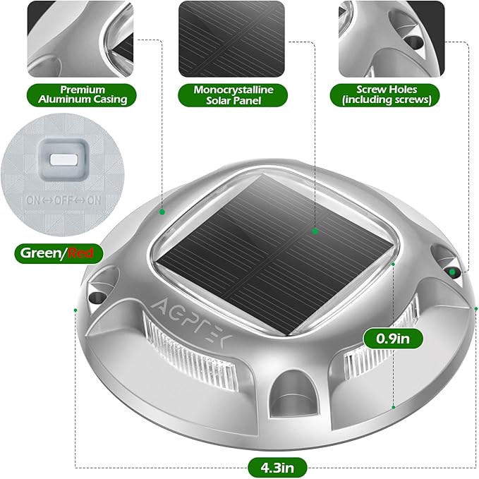 AGPTEK Solar Driveway Lights Outdoor 1 Pack, 2 Color Modes LED Deck Dock Marine Waterproof Security Marker Lights for Step Sidewalk Stair Garden Pathway Walkway Yard(Green/Red)