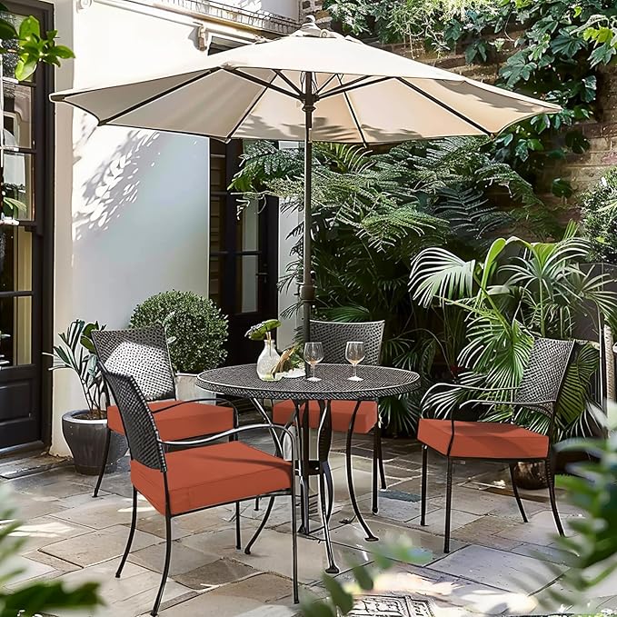 Favoyard Patio Chair Cushions 18 x 18 x 3 Inch Waterproof Outdoor Seat Cushions for Patio Furniture 3-Year Color Fastness Garden Sofa Couch Chair Pads with Handle & Adjustable Straps Set of 2, Spice