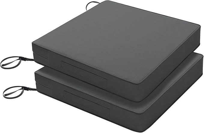 Favoyard Patio Chair Cushions 20 x 20 x 3 Inch Waterproof Outdoor Seat Cushions for Patio Furniture 3-Year Color Fastness Garden Sofa Couch Pads with Handle & Adjustable Straps Set of 2, Dark Grey
