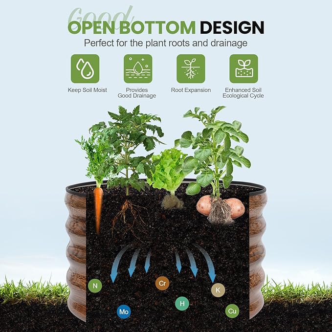 - 【Open Bottom Design】 The above ground garden bed feature an open base, promoting excellent drainage and aeration. This allows roots to grow freely, creating an ideal environment for healthy growth and abundant harvests.