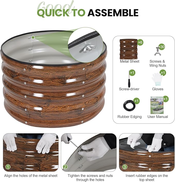 - 【Easy & Quick Assembly】The garden raised bed comes with user-friendly tools and clear instructions. Its simple structure design, with wing nuts allows for quick, tool-free assembly, more efficient than using regular nuts. (Warm Reminder: Remove the protective film before installation)
