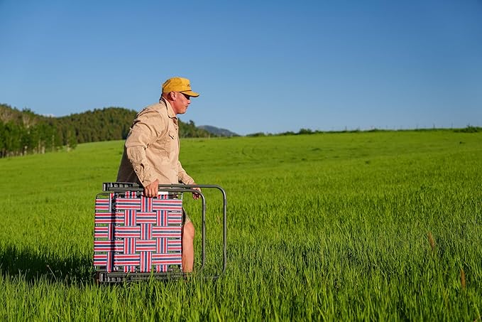 Retro Webbed Camping Chair - Lightweight, Foldable, Durable Steel Frame, 300lb Capacity, Vintage Red/Blue Stripes by Caddis Sports