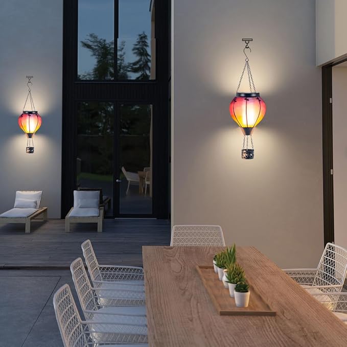 - 【Hot Air Balloon Solar Lantern】Hot air balloon has rich meanings, which represents courage, hopes, dreams, romantic love. Our solar hot air balloon flickering flame hanging garden light is like rising hot air balloon, carrying our wishes.