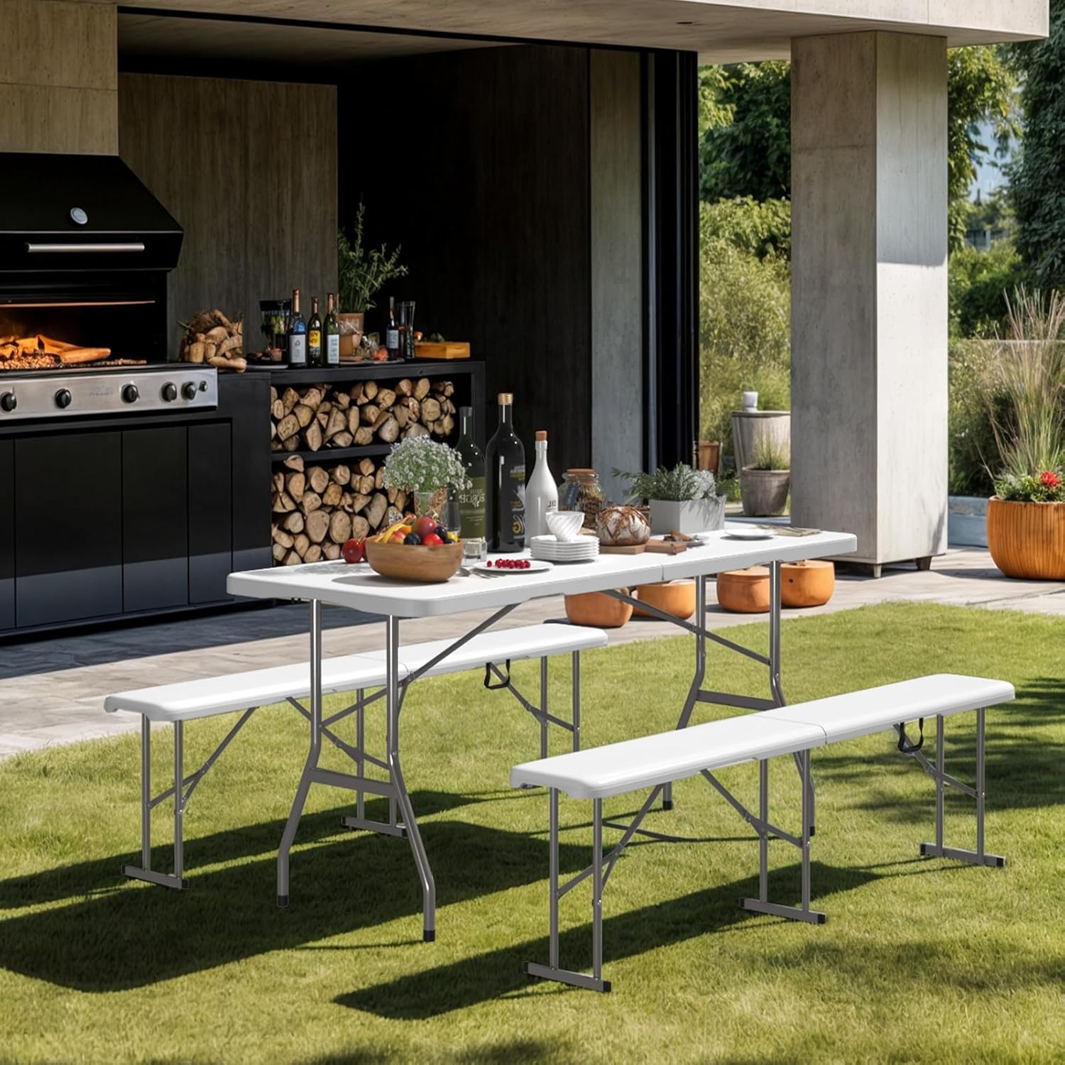 6ft Folding Table, Outdoor Foldable Table with HDPE Tabletop, Safety Locks, Easy to Carry and Store, No-Assembly Camping Table for Dining, Picnic, White