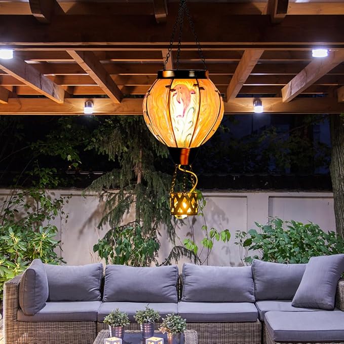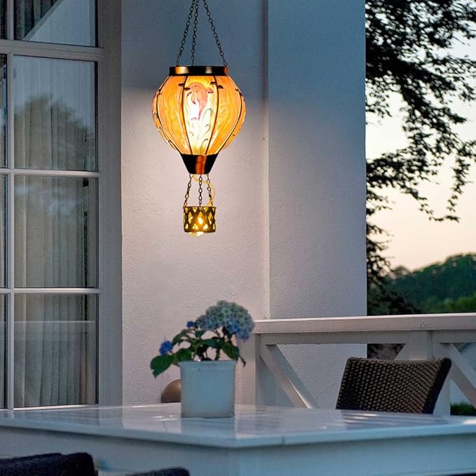 - Multi-scenario Use: The solar lanterns outdoor hanging can adding charm to any outdoor living space.The solar outdoor lantern is equipped with a hook,allowing you to easily hang the hot air balloon light anywhere.It is suitable as garden decor,patio decor,pathway decor,yard decor,porch decor or party decor.Hot air balloons represent courage,hope,and dreams,They are perfect as birthday gifts,Christmas gifts,and Mother's Day gifts for women,mom,and grandma