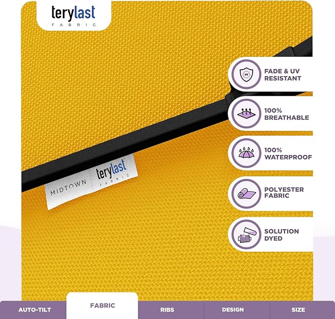 Midtown Umbrellas 10-Year-No-Fade - 8 Ft - UV Proof Sunflower (Yellow) Fabric - Umbrella Outdoor Patio, Auto-Tilt Aluminum Frame Patio Umbrella for Garden, Pool & Deck - Black Pole
