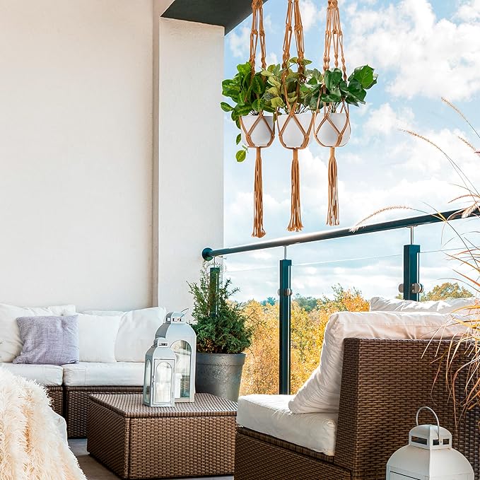 - MACRAMÉ PLANT HANGERS (4-PACK): Beautifully suspend potted plants and flowers with bohemian inspired hanging plant holders. Perfect for home and garden lovers