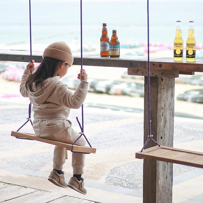 - Innovative Recessed Design: We’ve engineered this swing with a brilliant recessed middle support board to keep you securely seated, giving you peace of mind while you enjoy the ride! The natural, unpainted wood surface offers superior grip, so you can swing higher and more confidently, knowing safety is built right in.