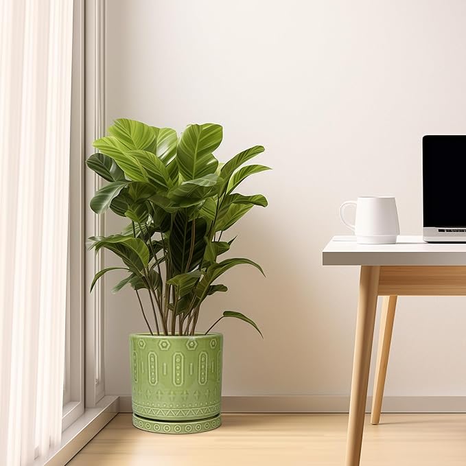 - Plant Pots with Drainage Holes: The ceramic plant pots with drainage holes and saucers ensures good water flow and air circulation, keeping your plants growth while avoiding excess water from spilling. Equipping a mesh pad can avoid soil from flowing out of the ceramic planter and contaminating your surface