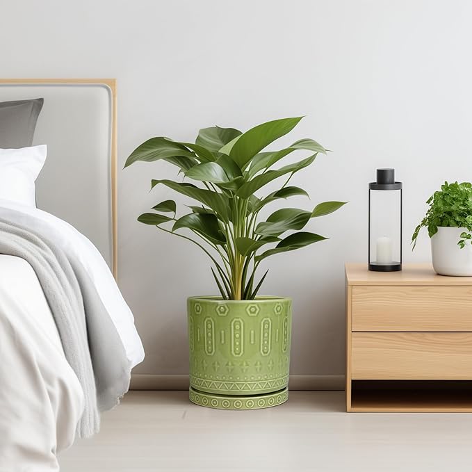 - Stylish Design: Bohemian or mid-century modern pattern of 10 inch plant pot adds sophistication to any space. Their elegant finish enhances visual appeal and suits various decor styles