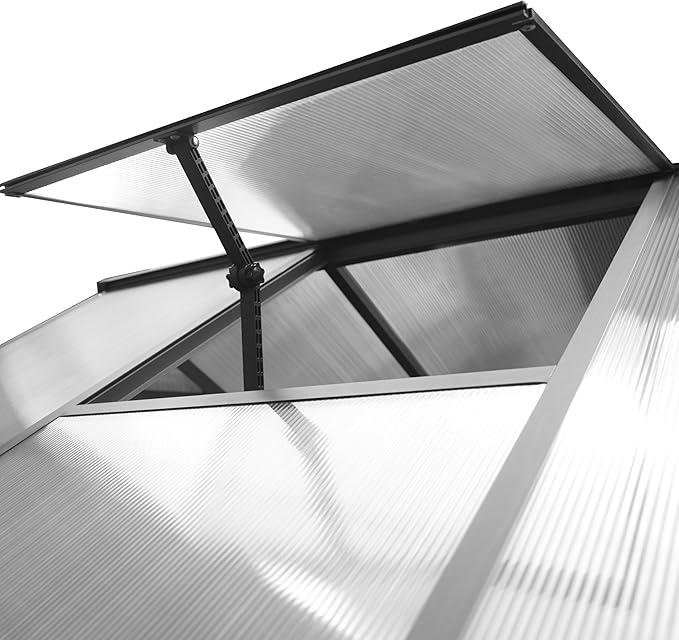 - Adjustable Design: With adjustable ventilation windows and a lockable door, this heavy duty greenhouse kit can ensure both fresh air circulation and safety for your plants. It can be installed in any panel. This design keeps your greenhouse cool and comfortable while providing a secure environment for your plants to thrive