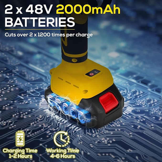 - Powerful Electric Pruning Shears: Designed for optimal cutting performance, these electric branch scissors effortlessly slice through branches up to 1.57 inches thick, ensuring your pruning tasks are completed quickly and efficiently. Equipped with a dual high-performance battery, our electric pruner provides consistent power for extended use