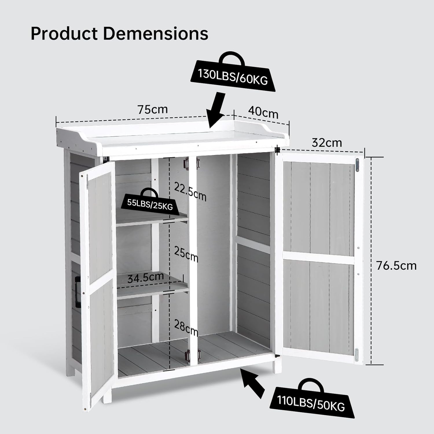 Outdoor Cabinet with Metal Tabletop Garden Potting Bench Table - Outdoor Garden Patio Wooden Storage Cabinet with Adjustable Shelf, Wooden Storage Cabinets, Weatherproof for Garden Patio Lawn