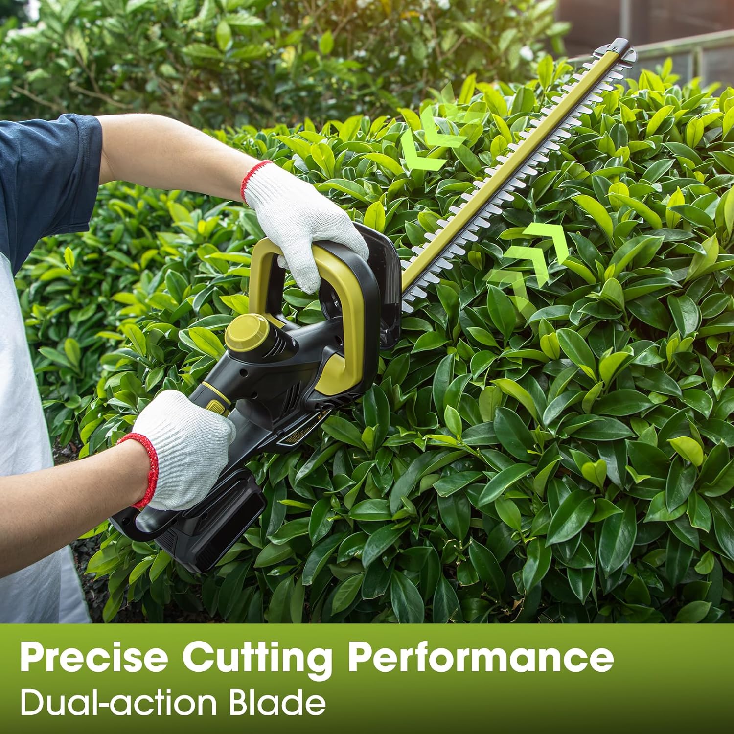 - [Precision Hedge Trimmer for Immaculate Cuts]Experience top - tier performance with our battery - operated hedge trimmer. Boasting a 22 - inch hardened steel blade and a 3/5 - inch cutting capacity, it is driven by a high - speed pure copper motor that can reach up to 1600 RPM. Achieve professional - grade results with ease, even when dealing with thick branches.
