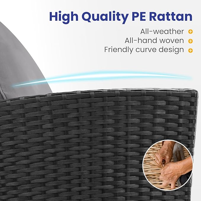 - Durable & Strength Structure:The patio conversation set is made of thick, high-quality rattan material that is weather-resistant, sturdy, and crack-resistant. This patio furniture set also features a powder-coated steel frame as its core for extra strength. Each seat can hold up to 310 lbs