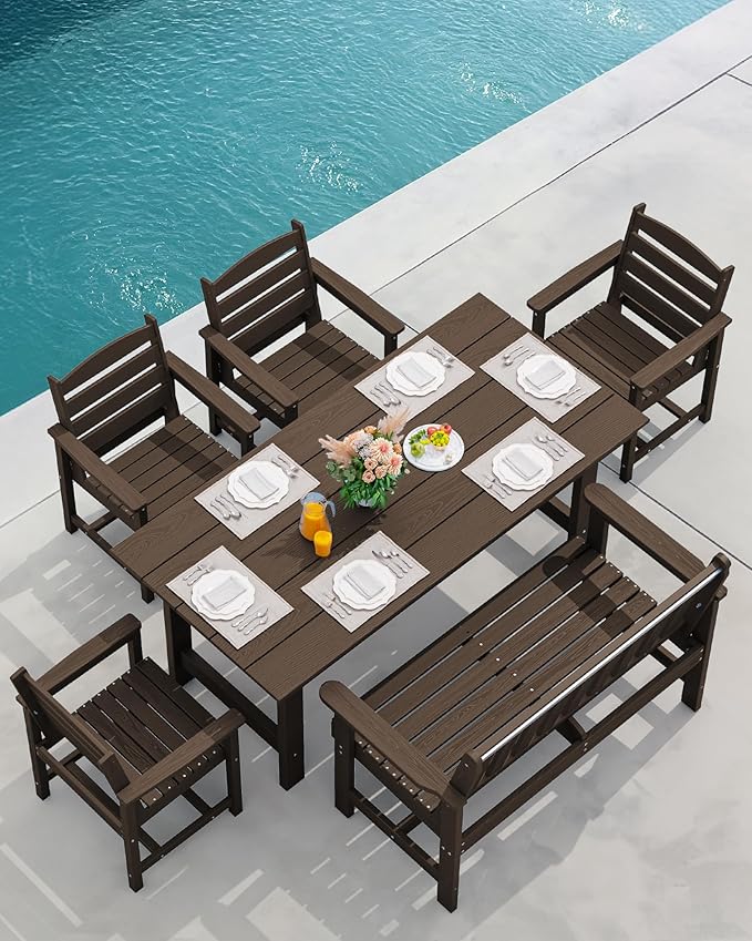 - Never Fade: The color of this outdoor long bench is intrinsic to its HDPE material, with no paint used. This means it contains no harmful substances like methane and will never fade, rot, or crack. Its high weather resistance ensures it remains a long-lasting addition to your garden for years to come.