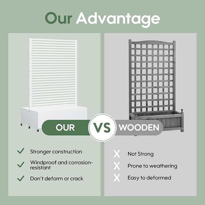 - Versatile Design--This metal planter with trellis serves triple purposes as an elevated garden bed for flowers/plants, a sturdy trellis for climbing flora, or a stylish privacy screen to enhance outdoor living spaces. Its adaptable structure makes it the ultimate gardening solution for diverse needs.