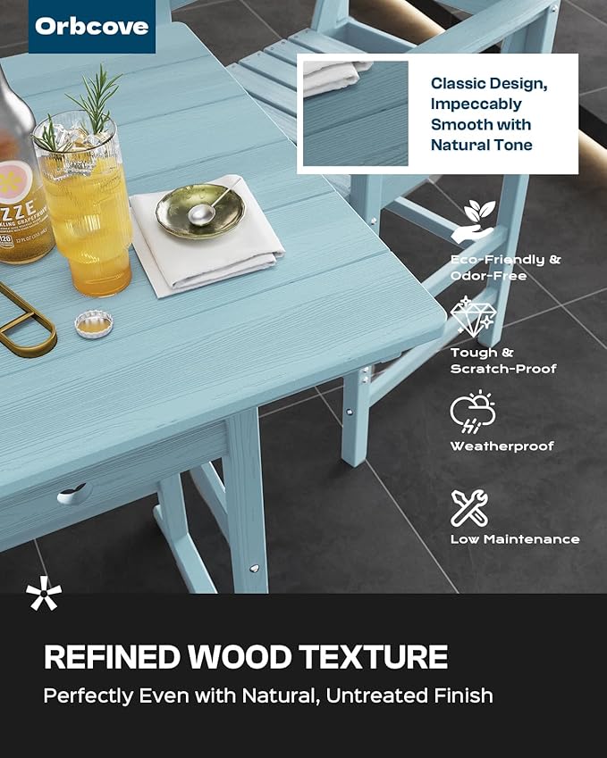 - All-Weather, Durable HDPE Material: Made from high-density polyethylene (HDPE), this table is waterproof, UV-resistant, and built to withstand rain, sun, and seasonal temperature changes without cracking, fading, or rotting. It’s made for outdoor use all year long.