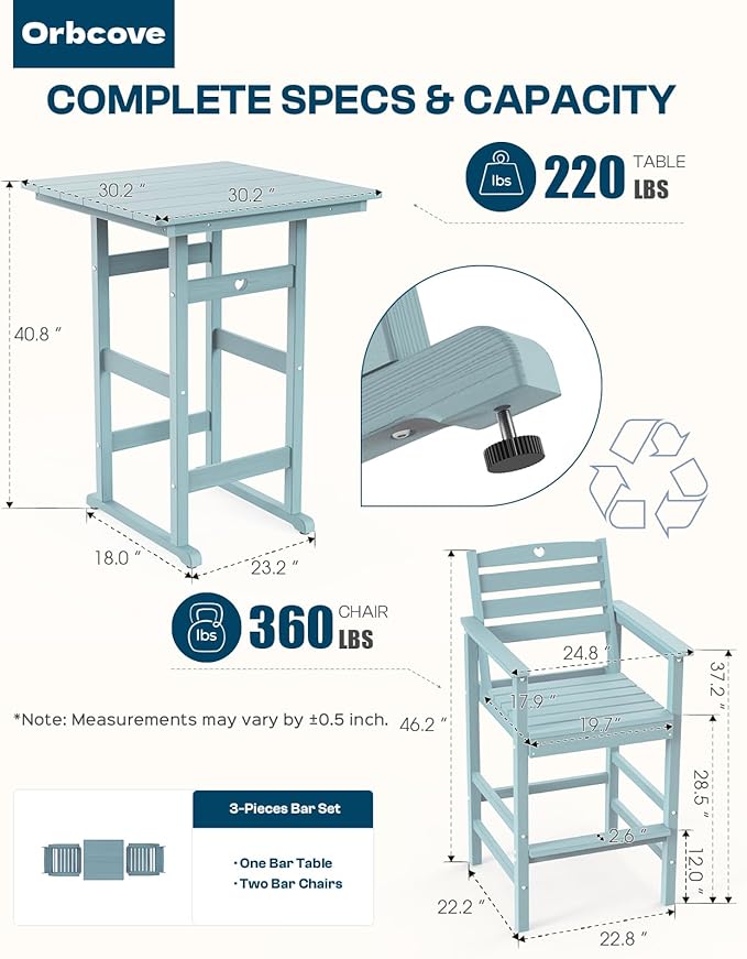 Adirondack Outdoor Bar Table, Durable HDPE Composite, Weather Resistant, Easy to Clean, Perfect for Backyard and Poolside Use, Light Blue