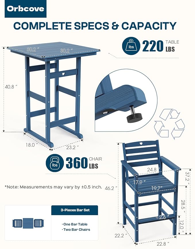 Adirondack Outdoor Bar Table, Durable HDPE Composite, Weather Resistant, Easy to Clean, Perfect for Backyard and Poolside Use, Navy Blue
