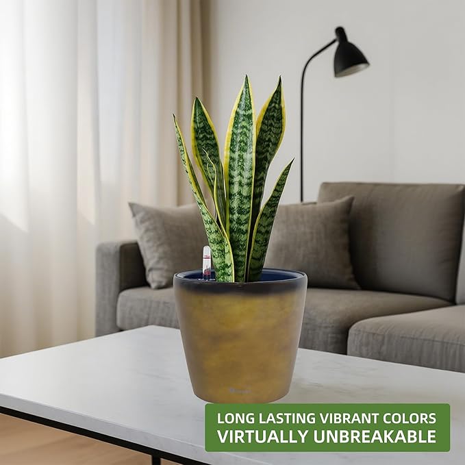 Dexceder 9x8 Inches Self Watering Planter Indoor Outdoor, Inner Pot Design, Thickened Table Flower Plant Pot with Water Level Indicator (Yellow Brown Gradient)