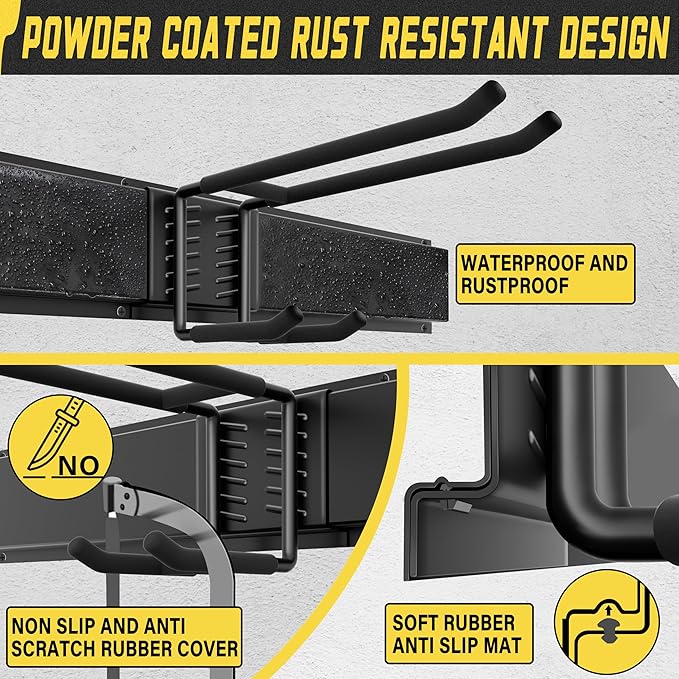 - VERSATILE TOOL RACK:Our Garage Storage System Isn't Just for Your Garage Tools;it’s Perfect for Arranging Garden Tools,Brooms,Hoses,and Even Sports Equipment Like Hockey Sticks And Ski Gear.This Multifunctional Storage Solution Maximizes Your Space.