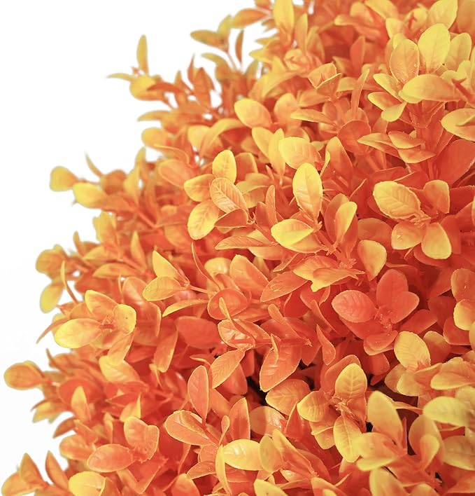 - Realistic Fall Color & Texture: Each faux topiary ball bush features realistic autumn-toned boxwood foliage in deep orange, these boxwood plants look like real fall foliage. Each ball bush features a full, lifelike shape—perfect artificial outdoor shrubs for seasonal curb appeal.