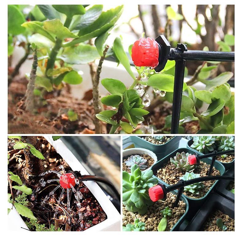 - Save Time and Save Up to 80% Water: Our automatic watering drip irrigation system minimizes water loss by hydrating plants directly at their roots. Easily adjust the drippers with a twist of the cap for precise watering. Combine them into one long drip irrigation system to cover up to 250 square feet; combine them into two separate drip watering systems to cover up to 120 square feet.