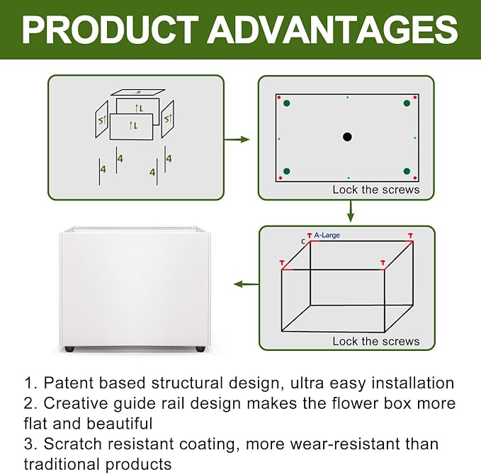 - 【ROBUST METAL CONSTRUCTION】Crafted from sturdy galvanized steel+aluminium, this spacious planter boasts exceptional durability, ensuring it withstands outdoor elements without rusting or fading. Its weather-resistant design makes it suitable for year-round use in temperatures ranging from freezing cold to scorching heat, ideal for enhancing both indoor and outdoor settings.