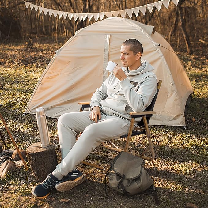 - 【COMFORTABLE DESIGN】Ergonomic back and armrest is designed to provide you comfort and relax even if you sit in the camping chair for a long time. Large seat area provide comfort, which is large enough for tall and heavy people
