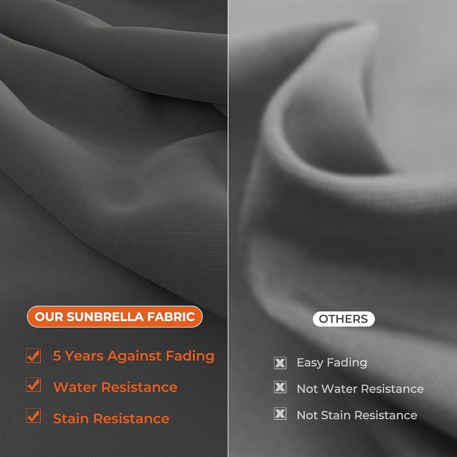 - Sunbrella Fabric Canopy: Made from 100% solution-dyed acrylic, the 270g Sunbrella fabric is breathable, water- and stain-resistant, and offers 5-year fade protection—perfect for long-lasting outdoor use.