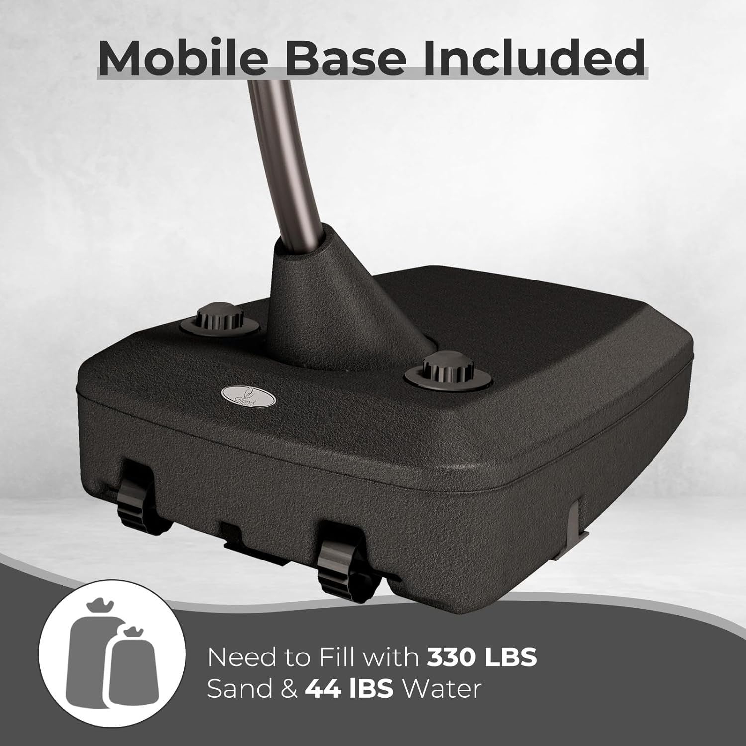 - Stable Wheeled Base Included: The base includes hidden levelers and built-in wheels for easy movement. Fill with 330 lbs of sand and 44 lbs of water (total 374 lbs) to keep the umbrella stable in windy conditions.