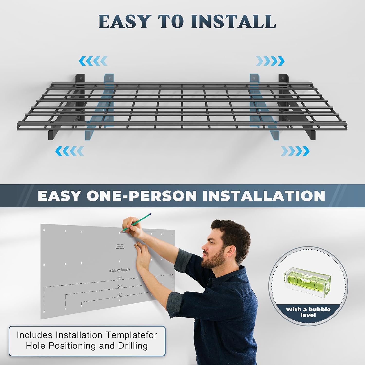 - 🔧【Effortless Modular Installation】- No drilling expertise required! Simply align the template, secure the brackets, and snap the grids into place. Compatible with concrete, wood, and brick walls (note: not for metal walls). Transform your cluttered garage into an organized space in under 30 minutes!