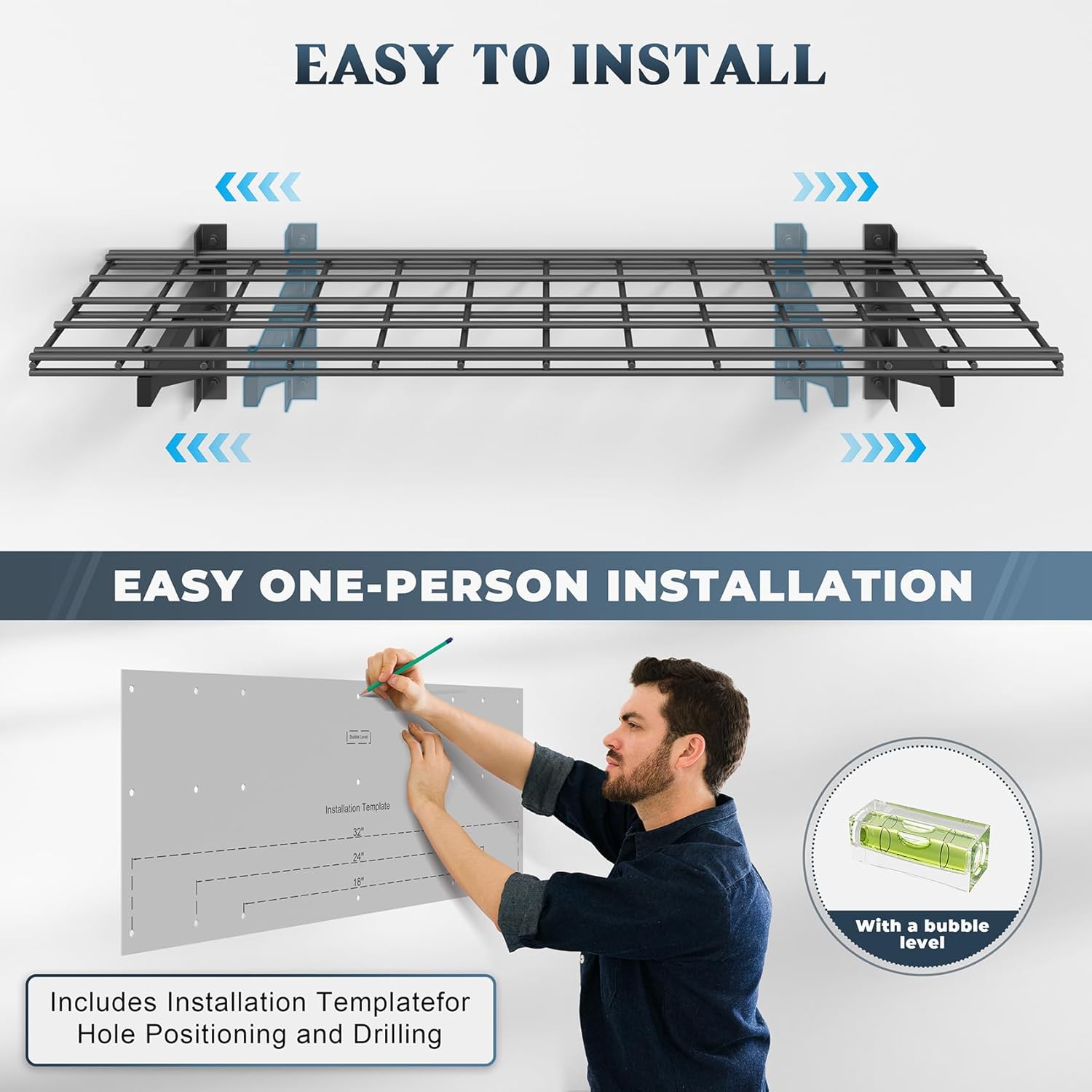 - 🔧【Effortless Modular Installation】- No drilling expertise required! Simply align the template, secure the brackets, and snap the grids into place. Compatible with concrete, wood, and brick walls (note: not for metal walls). Transform your cluttered garage into an organized space in under 30 minutes!