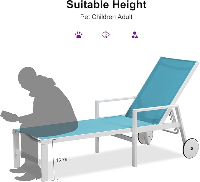 - Easy to Move: You can easily move the lounge chair anywhere with two wheels on the back legs and made it easier to use outdoors