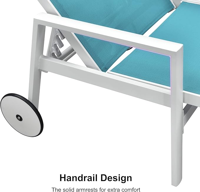 PURPLE LEAF Outdoor Lounge Chairs Set of 4 White Aluminum Chaise Lounge Chair Outdoor with Wheels and Armrest for Patio Deck Pool Side Table Include, Turquoise