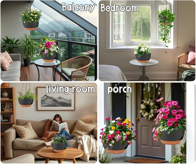 - ✅ 2 Large Self-Watering Planters: Double the value! Includes two 12-inch wide plastic hanging planters with built-in self-watering reservoirs to reduce the need for frequent watering and keep plants healthier.