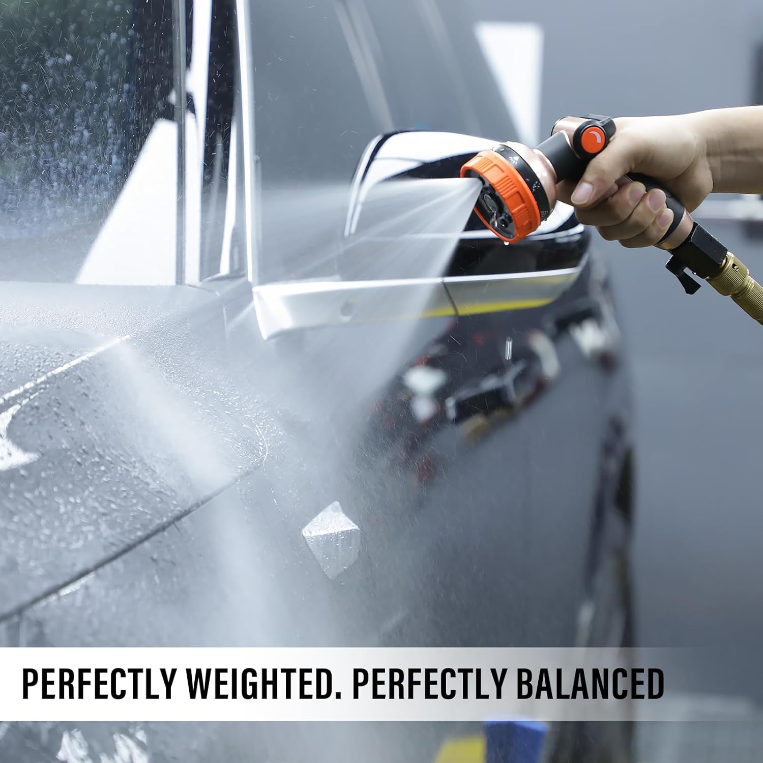 Heavy Duty Garden Hose Spray Nozzle, Metal Water Hose Nozzle with 8 Spray Patterns, High Pressure Hose Nozzle with Thumb Control On Off Valve for Lawn Watering, Car Washing, Pets Showering