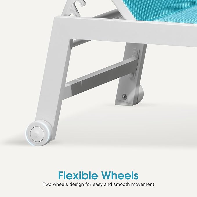 PURPLE LEAF Outdoor Chaise Lounge Set Adjustable Sunbathing Recliner with Side Table for Beach Poolside Outside Patio Aluminum Chaise Lounger Turquoise Blue