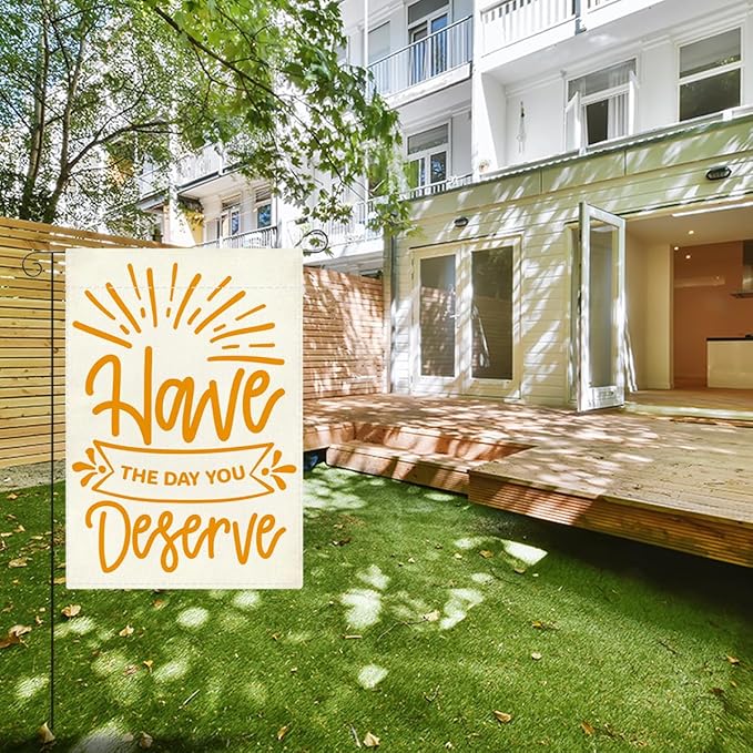 Summer Garden Flag Motivational Signs Have The Day You Deserve Decorations Small Double Sided Burlap art Stained Glass Style Garden Flags 12 x 18 Inch for Outside