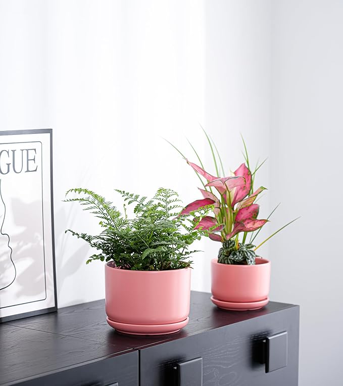 - 【High-Quality Ceramic Build】: Crafted from high-temperature fired stoneware, these ceramic planters are designed to withstand extreme conditions. The Pink Gold design enhances any indoor or outdoor space, bringing a bright, artistic vibe to your indoor planter pots and garden pots