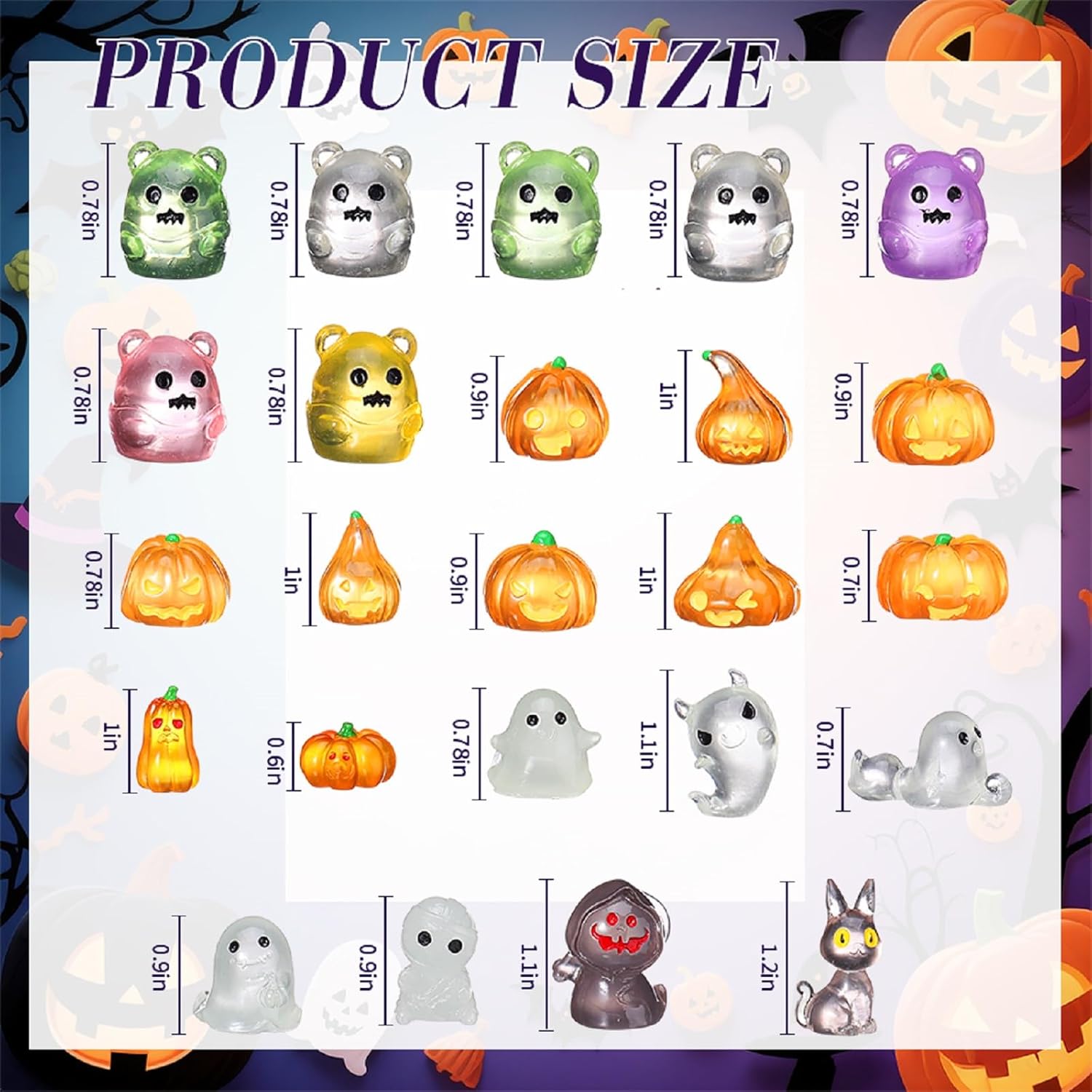 - Halloween Glow in Dark Figures Set: transform your space with 58 diverse glow in dark Halloween figures, Halloween miniatures illuminate in the dark; Craft a full-fledged Halloween ambiance effortlessly