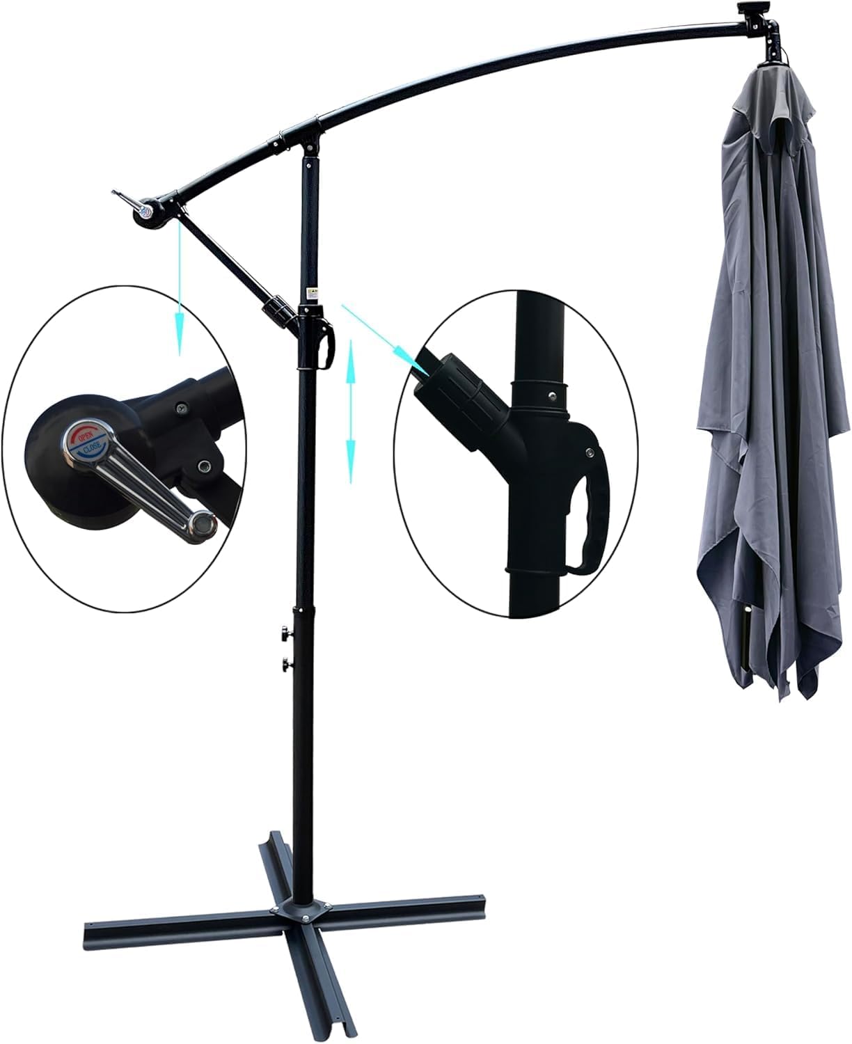 - âś… HIGH DURABILITY: Crafted from 180G polyester fabric, this 10x6.5ft offset patio umbrella ensures fade resistance, waterproofing, UV protection, and easy cleaning. The 1.9" diameter rust-resistant pole, 6 sturdy steel ribs and cross base, with a powder-coated finish, can withstand winds up to 20 mph. The vented top design increases stability and keeps the area cool, making this cantilever umbrella ideal for long-term outdoor use.